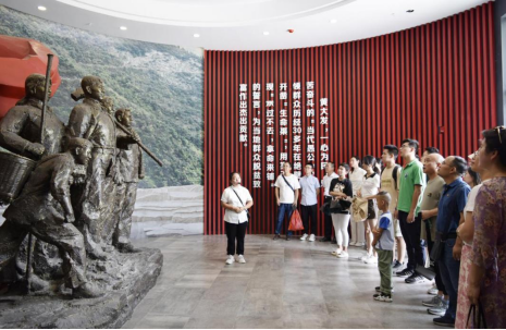 来到播州区平正仡佬族乡团结村,在讲解员的带领下,先后参观了大发渠和党性教育陈列馆,详细了解大发渠的修建历程以及修建前后乡村面貌的变化。感悟黄大发老支书及支部成员带着乡亲们经历了30多年,用钢钎、铁锤和双手,在悬崖绝壁间凿出一条长9400米的“天渠”的坚持不懈和为人民群众谋福利的精神。