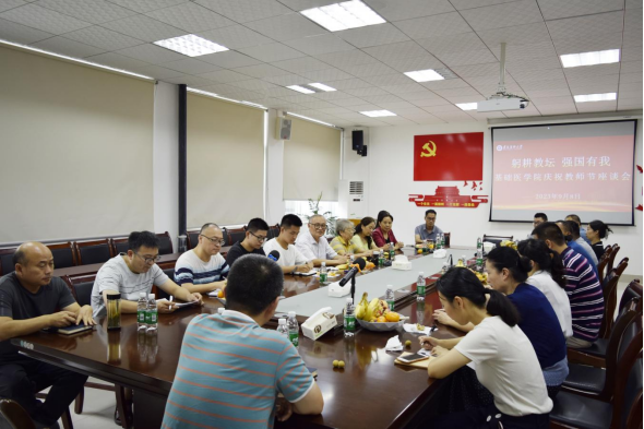 四楼会议室召开教师代表座谈会,热烈庆祝教师节并向全院教职员工致敬。学院特邀校关工委副主任钱民章教授、2048核基地