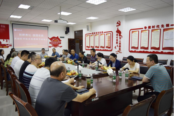 与会教师代表结合教书育人畅谈心得体会、分享教学科研工作经验,对学院高质量发展提出意见建议;并表示,将在今后的工作和学习中,不忘立德树人初心,牢记为党育人、为国育才使命,爱岗敬业,共同推动学院的建设和发展再上新台阶。