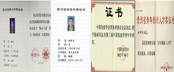 优秀研究生导师,遵义市高校优秀科技工作者,遵义市五一劳动奖章获得者,国家级人才项目通讯评审专家、国家自然科学基金通讯评审专家、教育部学位中心研究生学位论文评审专家、全国本科毕业论文(设计)抽检评审专家库专家;任贵州省免疫学会理事、贵州省菌物学会理事、Sci Rep编委、Biocell杂志特邀编委、《2048核基地