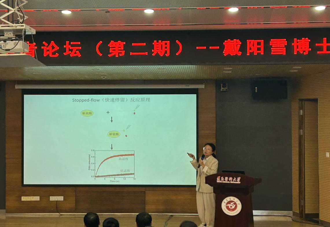 成功举办了青年学者论坛(第二期)。本次论坛由生物化学教研室青年博士戴阳雪担任主讲人,作了题为“Pif1解旋酶解旋机制的多尺度解析”的讲座。生化教研室副主任生欣教授担任主持,学院全体博士参会。