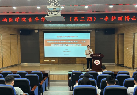 顺利举办了青年学者论坛(第三期)。本次论坛由人体寄生虫学教研室青年博士李萨丽担任主讲,作了题为“斑蝥素生物合成通路中关键分子机制——从农业害虫防治到昆虫中药药物合成探索”的学术讲座。人体寄生虫学教研室主任周必英教授担任主持,学院全体博士均参加了此次论坛。