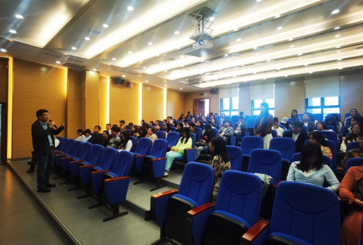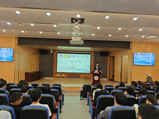 2016 届免疫学优秀毕业研究生、重庆医科大学免疫与疾病研究院丁陈波教授,为研究生们分享“个人求学与成长经历”。丁陈波教授以其丰富的学术经历和人生阅历,向在座师生们娓娓道来。他从自己的求学之路讲起,详细回顾了从本科到博士后阶段的求学历程,分享了其中的艰辛与收获,尤其是科研道路上遇到的挑战与突破。他强调,面对困难与挑战,坚持不懈与勇于探索是科研工作者必备的品质。他还鼓励在场的研究生们珍惜现有的学习条件,勇于追求自己的科研梦想,不畏艰难,勇往直前。