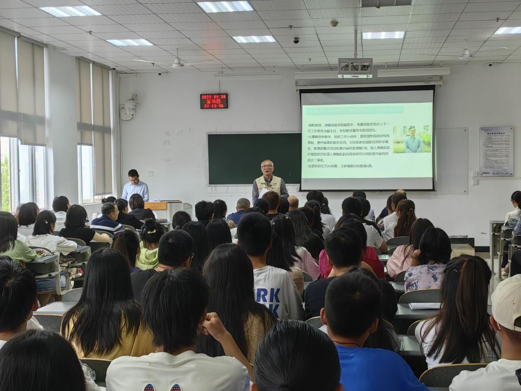 的发展历程以及学校本科教学工作、基础医学专业建设情况,强调基础医学专业的培养目标是夯基础、强科研、重素质,加深了2023级基础医学专业新生对学校、学院和本专业的认识。